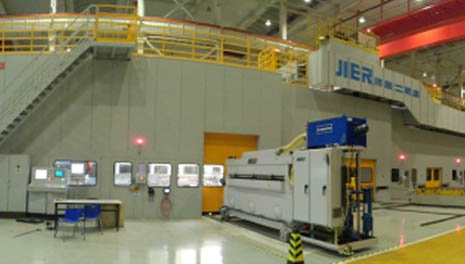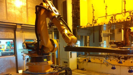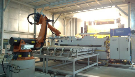 長(zhǎng)安某廠沖壓自動(dòng)化生產(chǎn)線主要包括:機(jī)器人拆垛系統(tǒng)、雙料檢測(cè)系統(tǒng)、板料輸送系統(tǒng)、板料清洗系統(tǒng)、視覺(jué)對(duì)中系統(tǒng)、機(jī)器人上料系統(tǒng)、線間機(jī)器人傳送系統(tǒng)、線尾下料輸送系統(tǒng)、整線封閉防護(hù)及照明系統(tǒng)、ADC(模具自動(dòng)化更換)系統(tǒng)、控制系統(tǒng)等。 線間采用機(jī)器人集成外部伺服滑臺(tái)系統(tǒng)實(shí)現(xiàn)大間距壓機(jī)間的板件傳送;整線壓機(jī)配置模具自動(dòng)化夾緊器,實(shí)現(xiàn)ADC(模具自動(dòng)化更換)功能,縮短換模時(shí)間、提升生產(chǎn)效率; 自動(dòng)化生產(chǎn)線采用整線隔音封閉防護(hù);有效的實(shí)現(xiàn)自動(dòng)化設(shè)備的隔離防塵、隔音降噪的功能,并且使得整套自動(dòng)化生產(chǎn)線整潔、美觀、大氣。 自動(dòng)化生產(chǎn)線壓機(jī)(單動(dòng))滑塊行程次數(shù)為12 SPM,汽車側(cè)圍、門內(nèi)板等中大型沖壓件生產(chǎn)節(jié)拍達(dá)6 SPM,整線自動(dòng)化開(kāi)動(dòng)率≥98%。